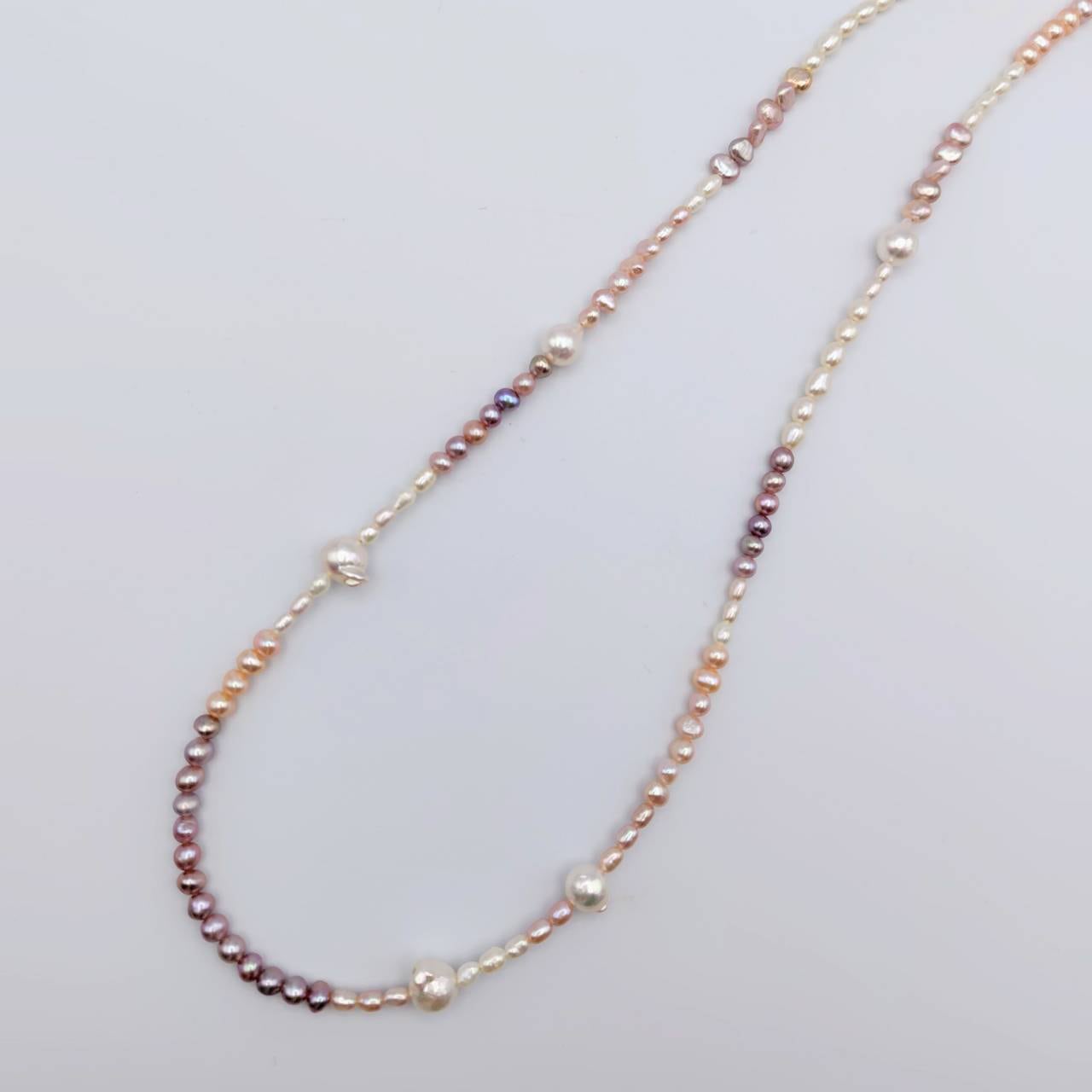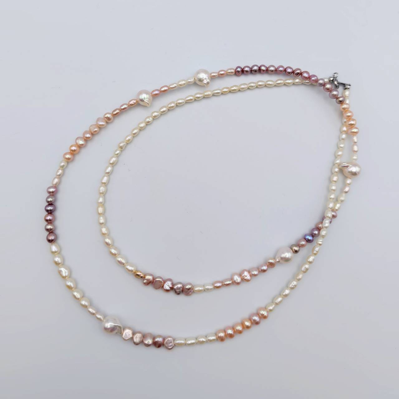 riseは、対馬の翼のバロック真珠3珠がアクセントになった個性的なロングネックレス。