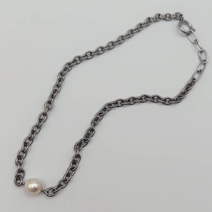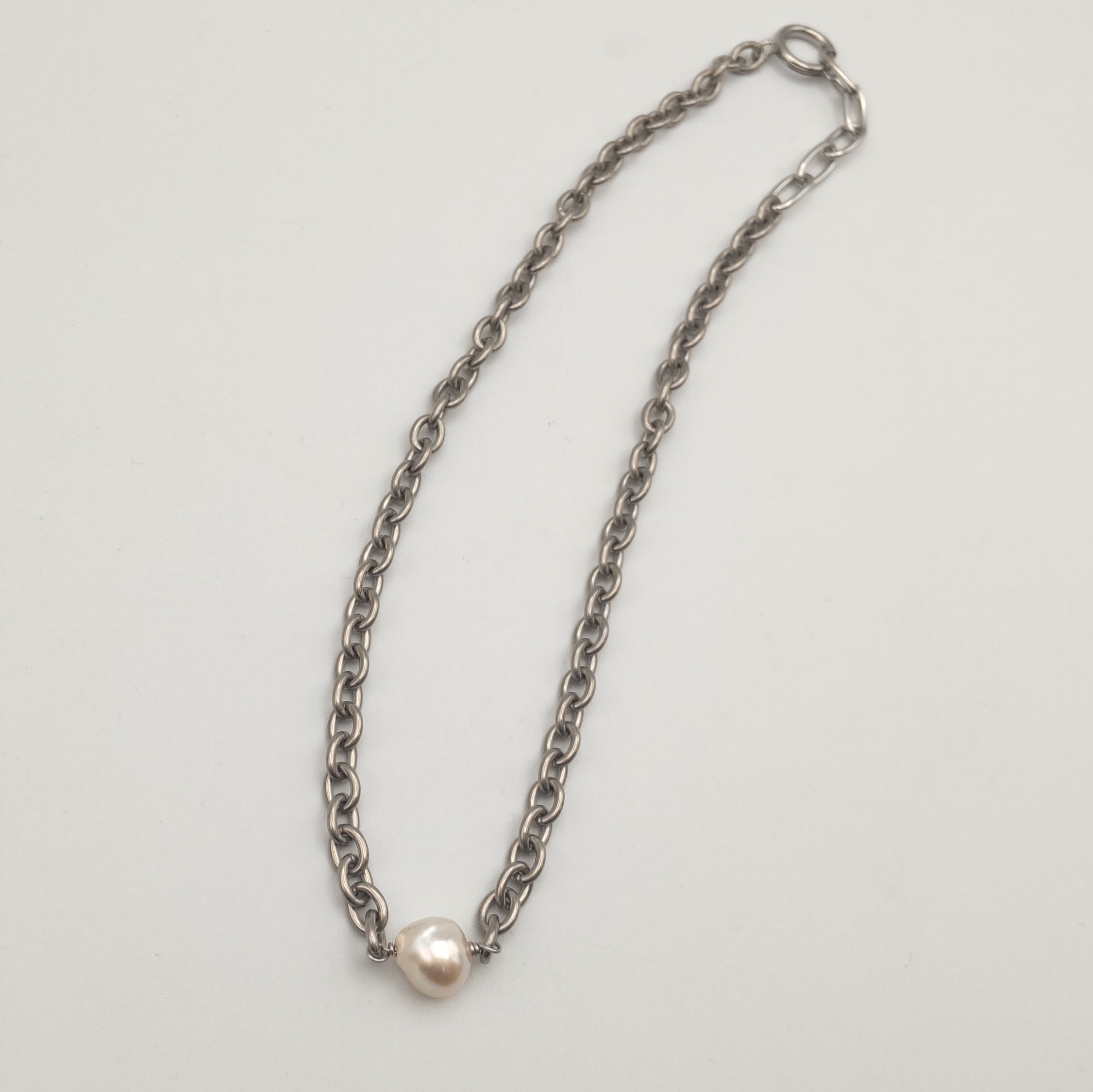チョーカーにもできる長さのステンレスショートネックレスです。