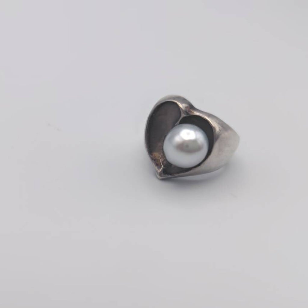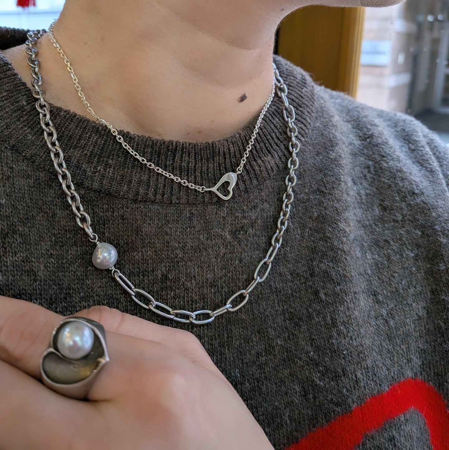 シックで重厚感のあるハートのリングはコーディネートのアクセントにも