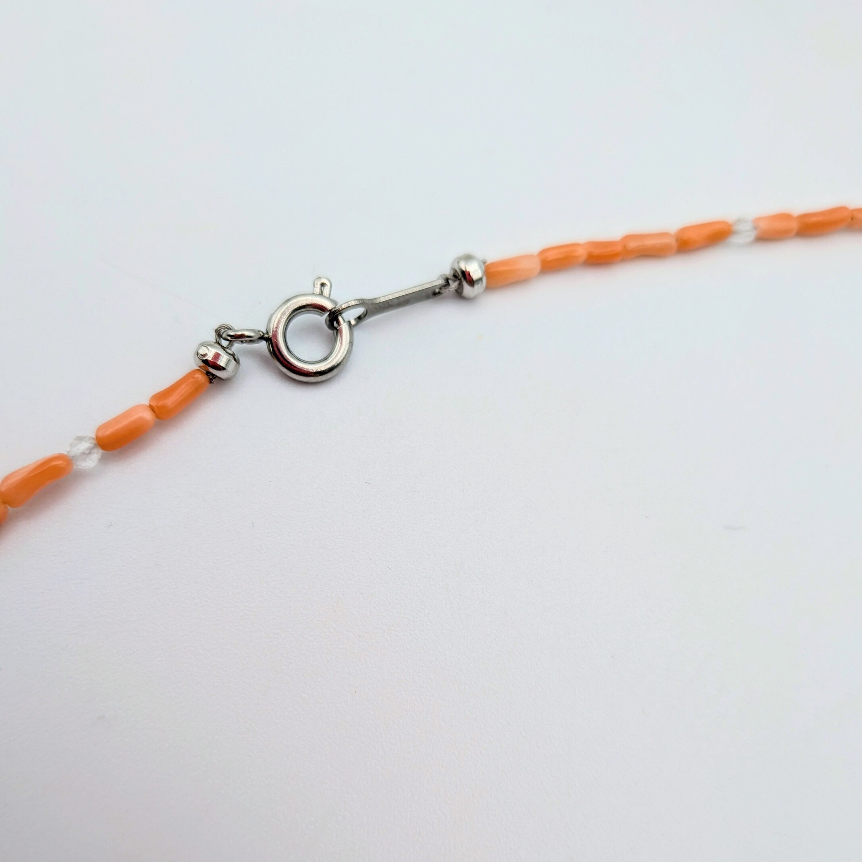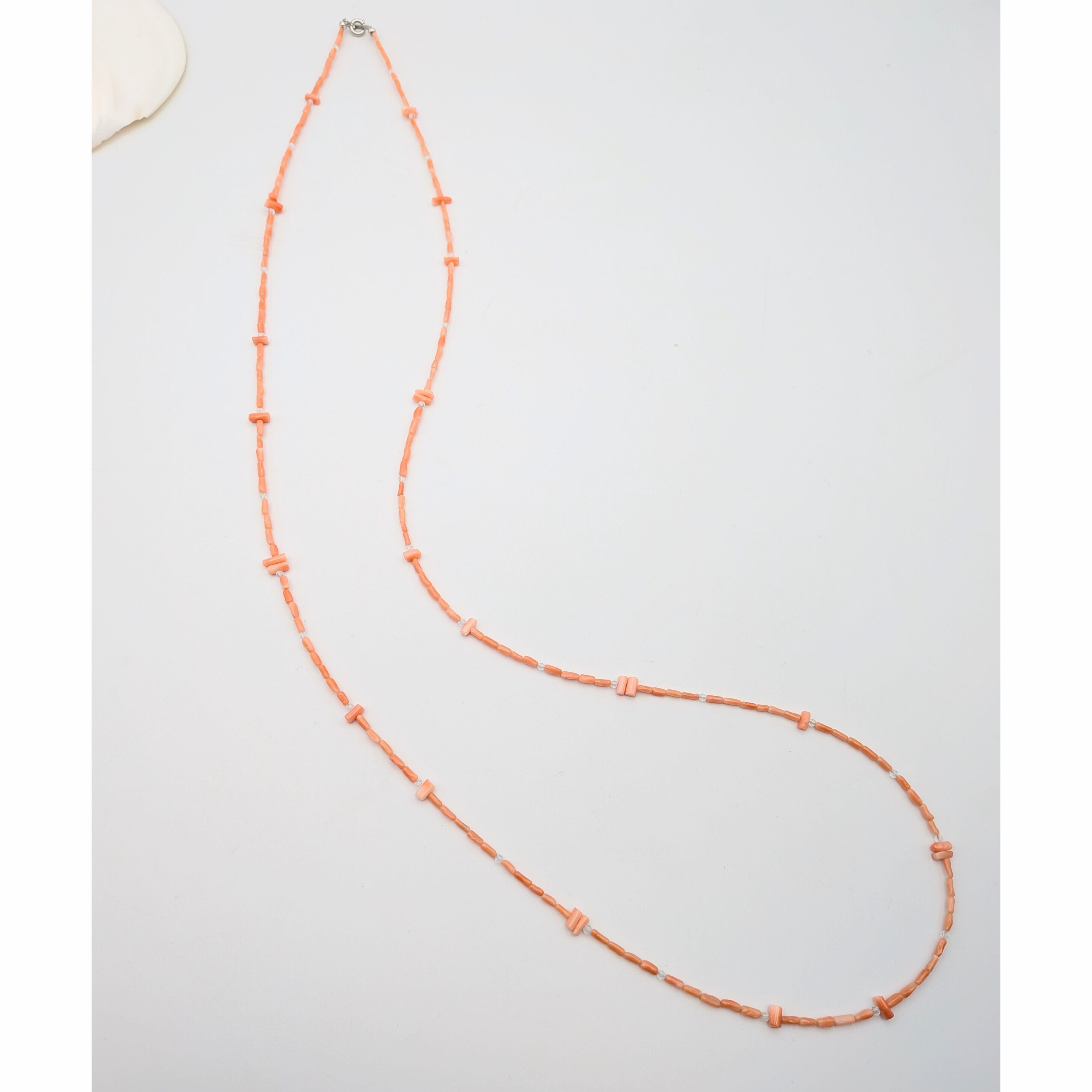 ランダムに置かれた桃色枝サンゴがカワイイネックレス、2連にしてもお使いいただけます。