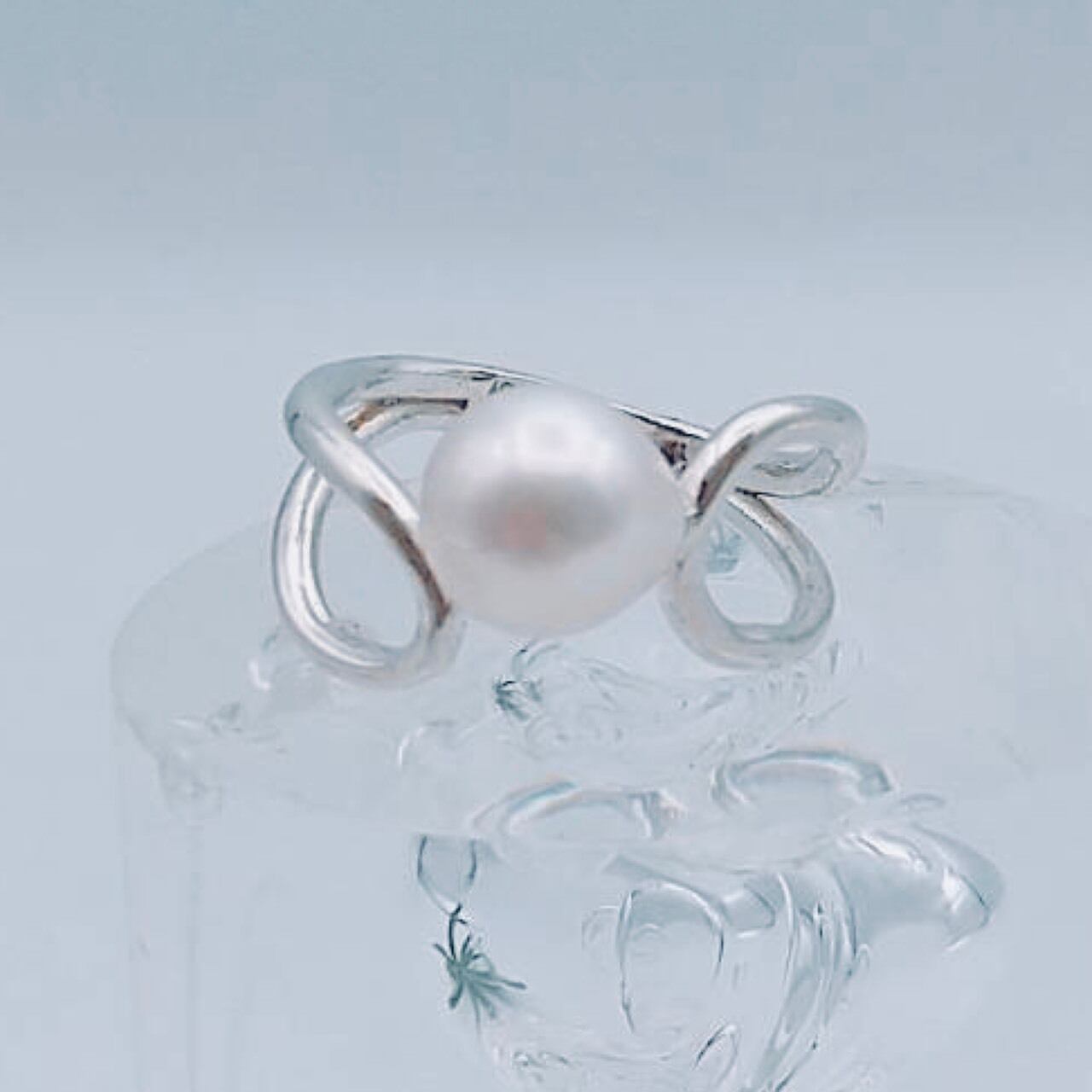 しなやかでいてしっかりとしたリングの曲線とセミラウンドのあこやパールが手元を華やかに彩ります